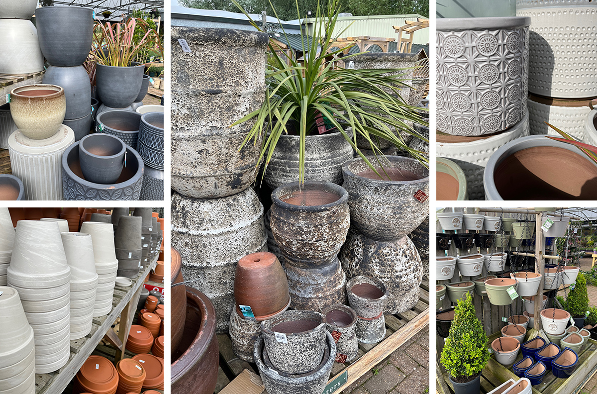 Glazed pots, Plastic pots, Wooden pots, Terracotta pots, Fibreclay pots and more. We have lots of designs, lots of colours, lots of shapes, lots of sizes and all available now!