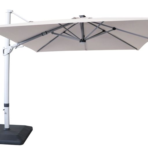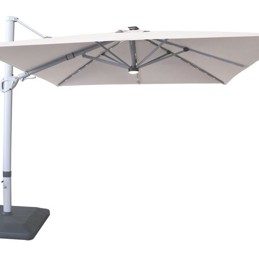 The Hartman Caribbean Round Cantilever Parasol is a large 3m diameter square parasol that has tilt and rotation functionality. This luxury parasol has solar powered lights on the canopy to take you from day to evening entertaining.