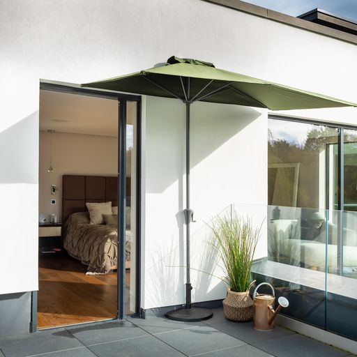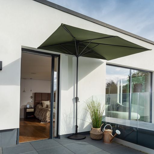 Ideal for small eating or lounging areas near a wall, high fence or house. You’ll be able to lean this Half Round Parasol neatly against a vertical structure and make the most of your outdoor space.