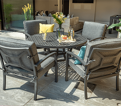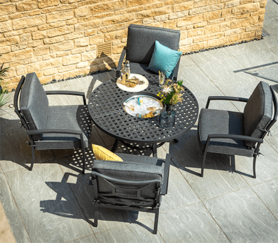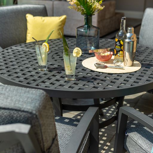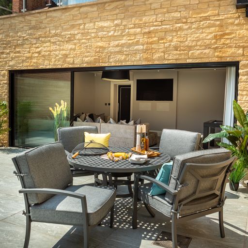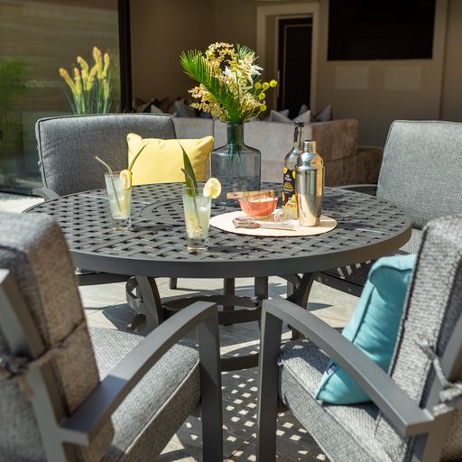 The Hartman Rosario 4 Seat Round Fire Pit Lounge Set is an easy to care for 4 seat fire pit set that has 3 functions – from grilling to chilling! Load the fire pit with wood, pop the grill over the top and get cooking whether it be breakfast, lunch or dinner! Alternatively, pack the pit with ice and load up with beers and wine, so your guests can enjoy a cold beverage throughout the day.