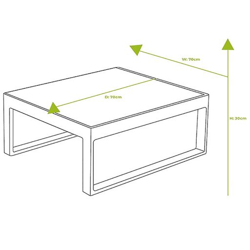 Table: Height 42cm x Width 75cm x Depth 75cm