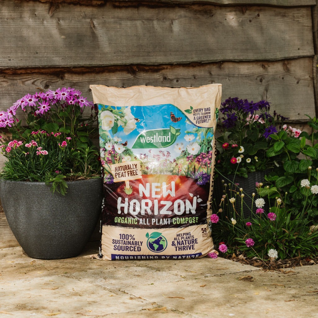 Westlands New Horizon Peat Free Plant Compost is designed for all plants, with added BIO3 it will help plants thrive and will feed for up to 6 weeks.
