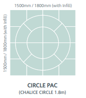 A 3.24m circle pack will create a paved floor area of 1.8m x 1.8m (see gallery plan)