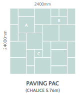 A 5.76m pack will create a paved floor area of 2.4m x 2.4m (see gallery plan not image)