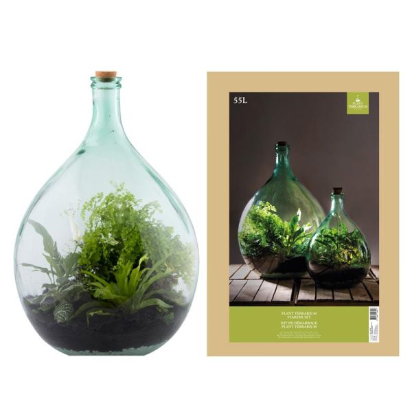 A set to make your own closed ecosystem. It contains 50 litre belly bottle, cork, telescopic fork and spoon (up to 83cm) With instructions on the box, this do it yourself Terrarium will brighten up any room in the home.