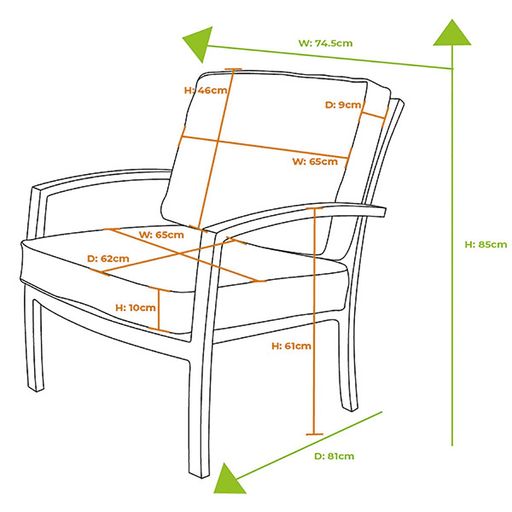 Lounge Chair Height 85cm x Width 74.5cm x Depth 81cm