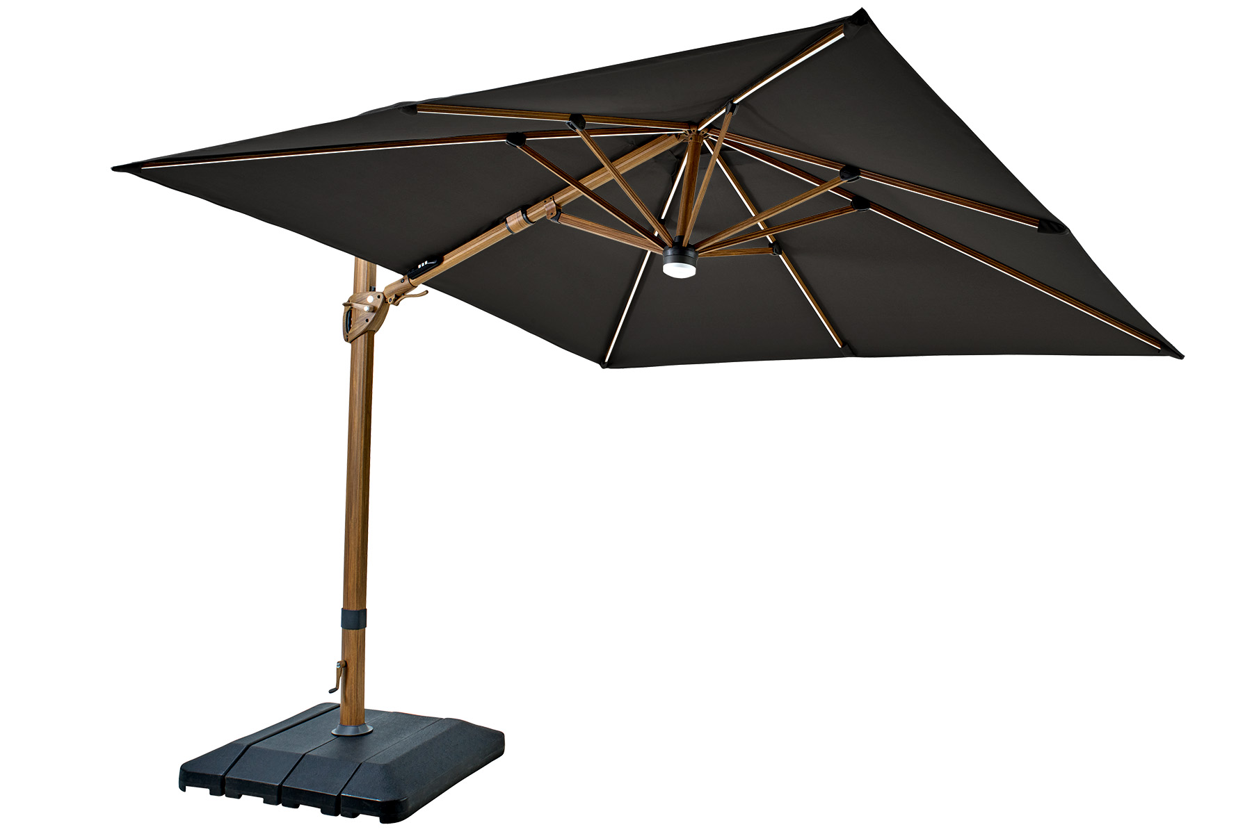 Seychelles Cantilever Parasol with Bluetooth Speaker, Lights & Base